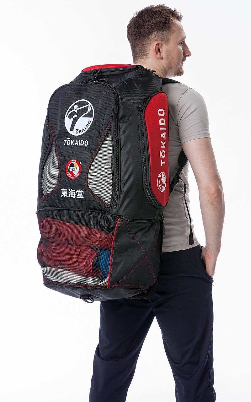 Táto priestranná športová taška od svetoznámej spoločnosti vyrábajúcej potrieby pre karatistov Tokaido ponúka dostatok priestoru pre kompletné bojové športové vybavenie, ako sú chrániče, kimono, chránič zubov atď. Vďaka veľkému počtu rôznych priestor táto taška je z tejto tašky ideálny spoločník pre tréning aj súťaže. „Monster Bag Pro“ sa dá nosiť ako taška na rameno alebo ako batoh.
